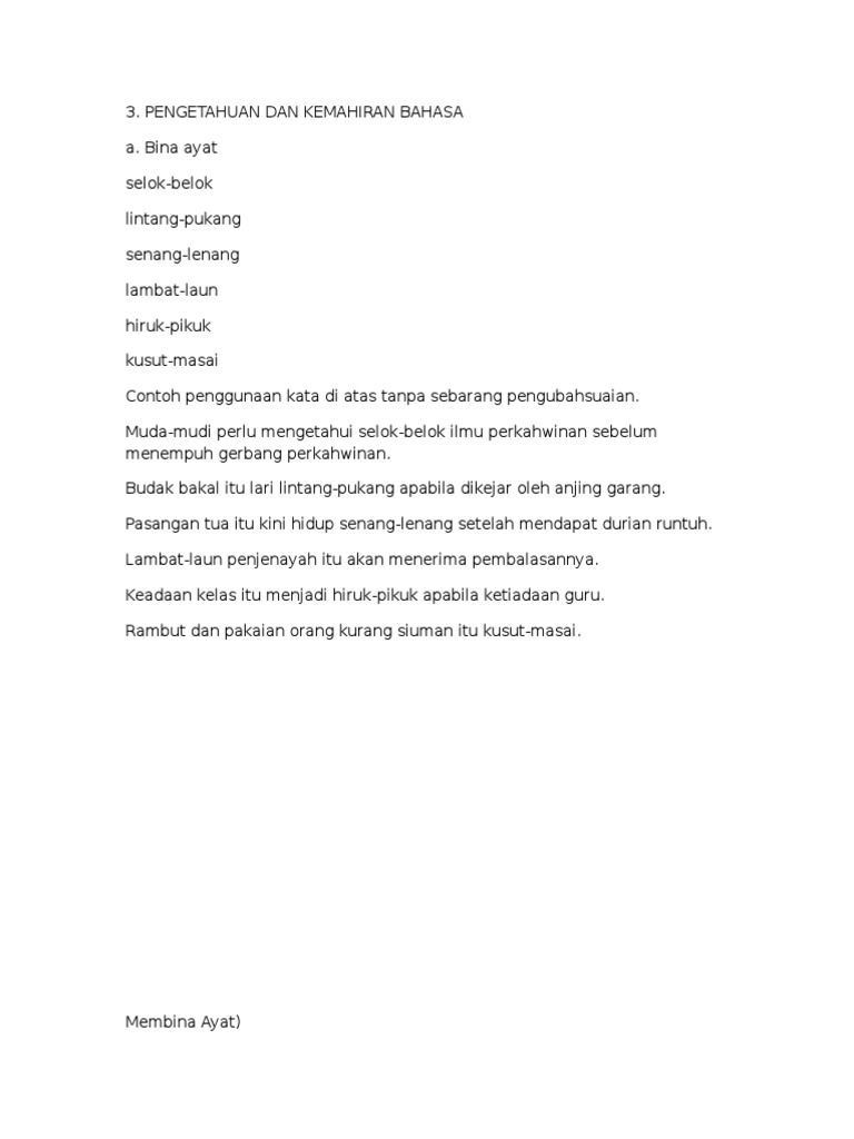 Penggunaan simpulan bahasa di penulisan karangan pada peperiksaan semua tahun ujian UPSR PT3 ataupun SPM oleh para pelajar adalah digalakkan untuk mendapat markah yang lebih tinggi. BAHASA MELAYU bina ayat. The less whiplashes the slower you work.